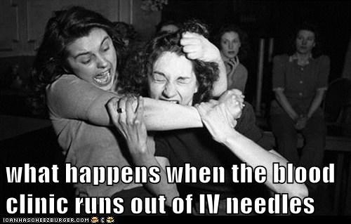 what happens when the blood clinic runs out of IV needles
