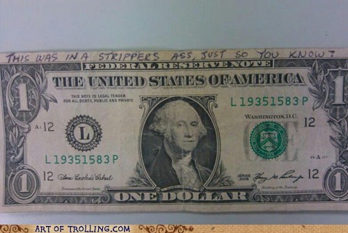 A dollar we got from a client at work, apparently it was in a stripper's ass...