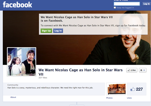 Well, not yet. Be he could be, if you sign this petition urging Disney to make the right call by hiring world-renowned actor Nicolas Cage to play Han Solo, the galaxy's scruffiest smuggler!
