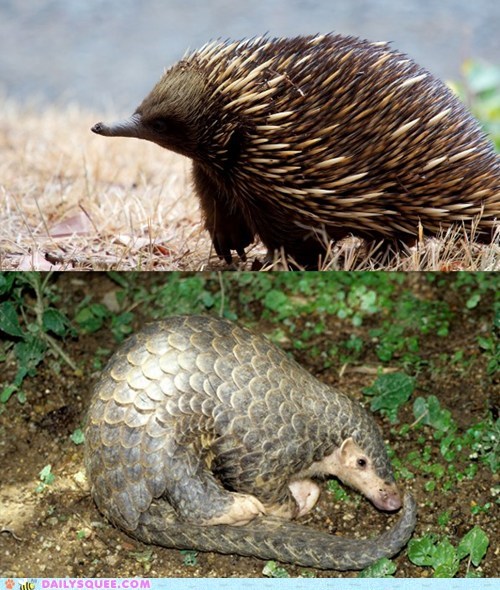 For this week's Squee Spree face-off we have two strangely squee creatures, the Echidna (top) and the Pangolin (bottom). The Echidna is one of the only egg-laying mammals in the world and is also known as the spiny anteater, while the Pangolin is the only mammal to grow scales made of keratin all over its body!