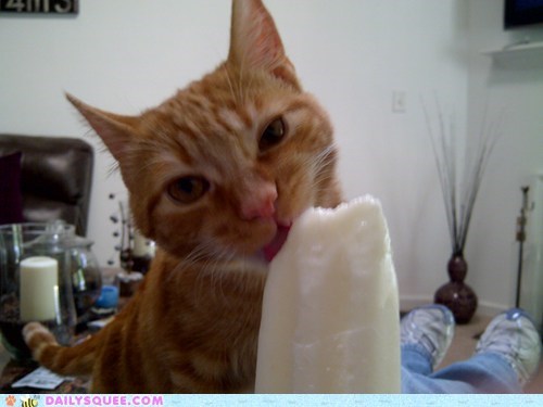 Mmmmmmm coconut popsicle. Does Cheeto share with you, or try to take it all for himself?