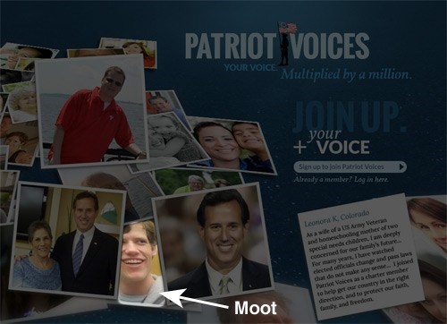 If you go to Rick Santorum's official website, you might find a picture of 4chan founder Christopher Pool (a.k.a Moot) sandwiched in between two photographs of the former Republican presidential candidate. First spotted by a Redditor, the image was soon confirmed as authentic by a spokesperson for the web design firm National Builder, who revealed that the site was designed by a contractor at the political consulting firm Brabender Cox. ... could this have been a clever web designer's intentional ploy to make the website go "viral"?