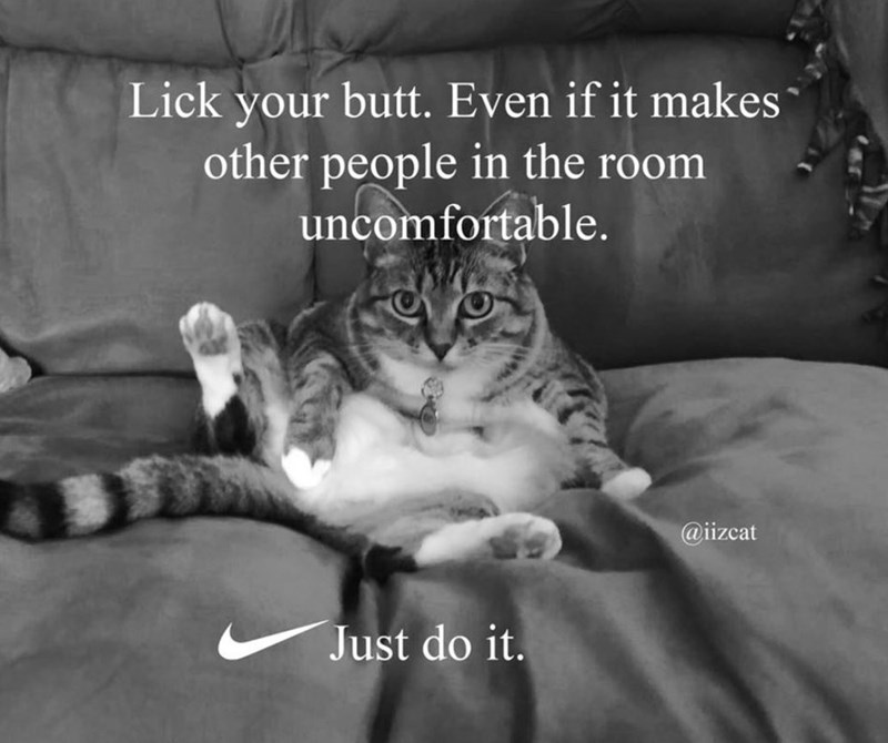 Nike has been in the news a lot lately with their new just do it campaign involving former NFL quarterback Colin Catpernick. People couldn't resist it and created some kitty flavored parodies. Via: Iizcats