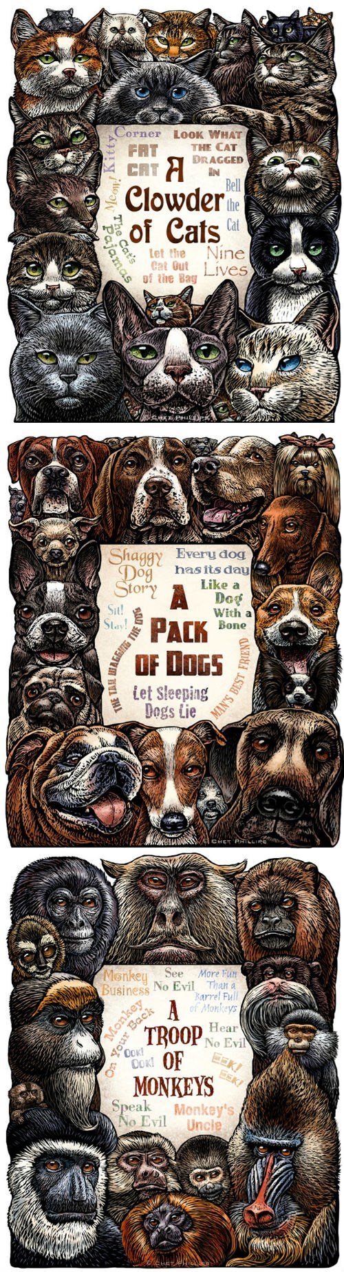 Collective Noun: Illustrated Series of Animals Framed Around Their Group Identifier