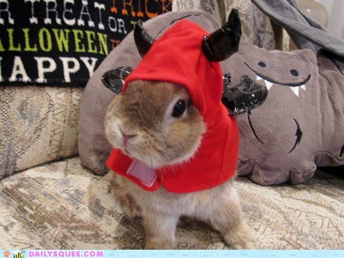 Alysaurus says: "Here is my bunny Mo, showing off his costume a few days after Halloween."