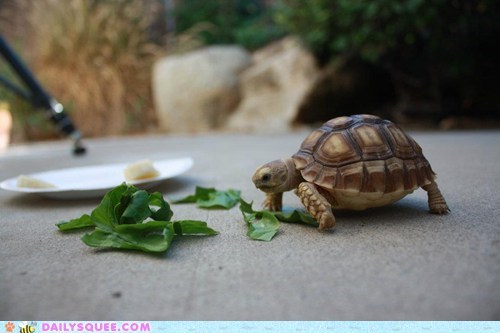 This is Dozer and he has a never ending appetite for lettuce and bananas that are much too big for him.