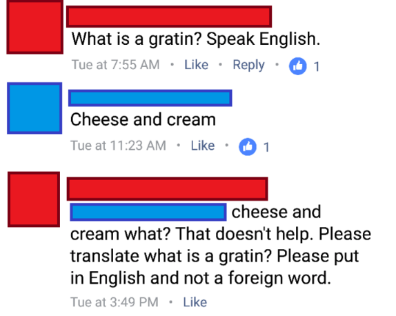 Facebook Comments Section Erupts Over Whether Gratin Is An English Word