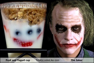 Fruit and Yogurt Cup Totally Looks Like Heath Ledger as The Joker