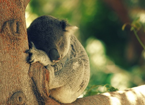 You'd hug a tree and love it too, if you needed to sleep an average of 17-hours-a-day and there wasn't a bed in sight!