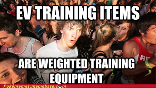 So you battle somebody with only EV training items equipped. You lose and then yell "I HAD MY TRAINING GEAR ON!", you then remove it, equip good items and wreck your opponent's face!