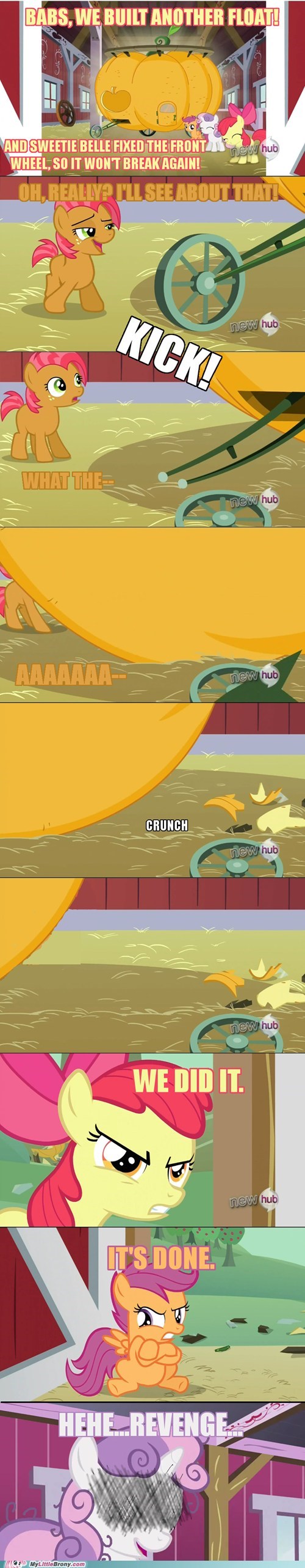 Dear Princess Celestia, today I learned that you do NOT F!@# with the Cutie Mark Crusaders. They will commit straight-up HORSE MURDER at the drop of a hat.