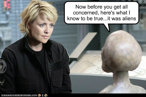 Now before you get all concerned, here's what I know to be true...it was aliens