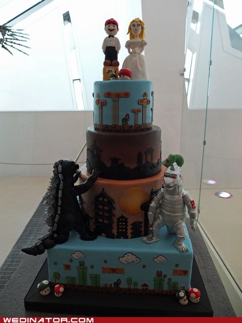 ** says: "I love Super Mario, my husband loves Godzilla, why not mash them together in a cake?!?"