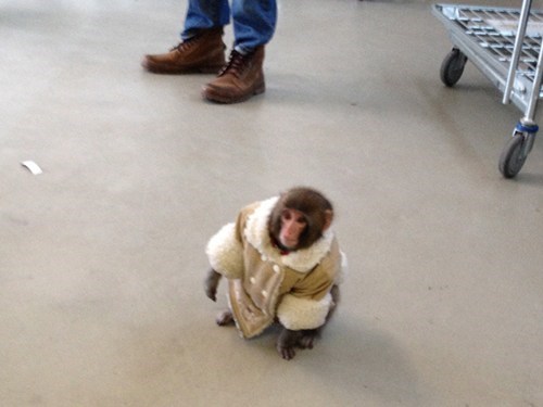 Have you met IKEA Monkey, the 7-month-old runaway primate dressed in a shearling coat that was found casually wandering around a Toronto IKEA store yesterday? According to the National Post, the monkey was spotted by staff members in the store's upper parking lot after escaping out of the cage and the car belong to its (now former) owners. This picture (shown left) was subsequently posted online by Bronwyn Page via Twitter, where the fashionable simian has already become a meme of sorts.