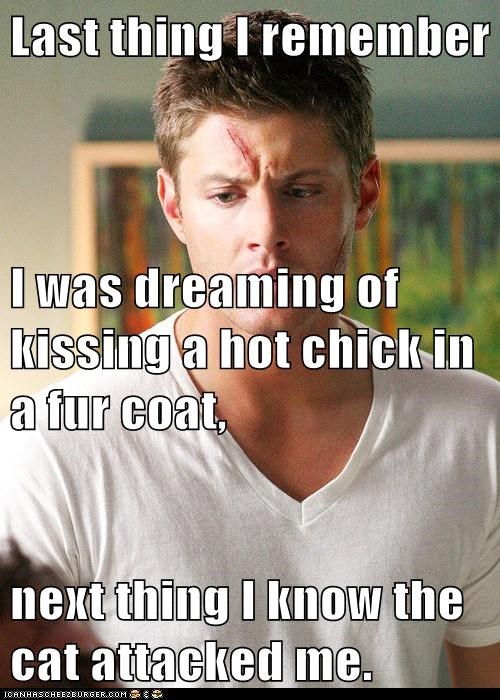 Last thing I remember I was dreaming of kissing a hot chick in a fur coat, next thing I know the cat attacked me.