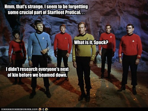 Hmm, that's strange, I seem to be forgetting some crucial part of Starfleet Protical. . .