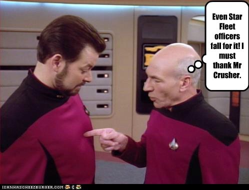 Even Star Fleet officers fall for it! I must thank Mr Crusher.