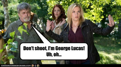 Don't shoot, I'm George Lucas! Uh, oh...
