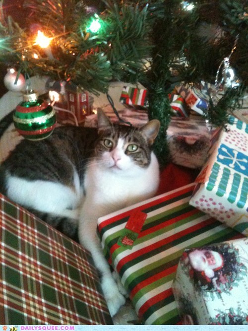 Cassandraprl says: "My kitty Spike thinks he's a present."