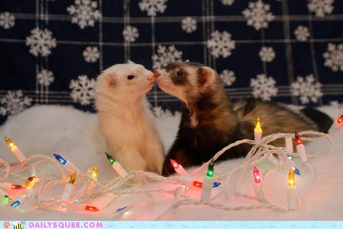 Nanci Frazier says:"Motor City Ferrets Shelter Ambassadors Miss Maggie and Clark Sable went all out for Holiday Cute. Our Ambassadors help receive ferrets to our Shelter from a ferrety perspective, as being left at a Shelter is a terrifying experience for any critter. With the help of our sweet-as-can-be-Ambassadors, the transition for many of our newcomers is that much easier."