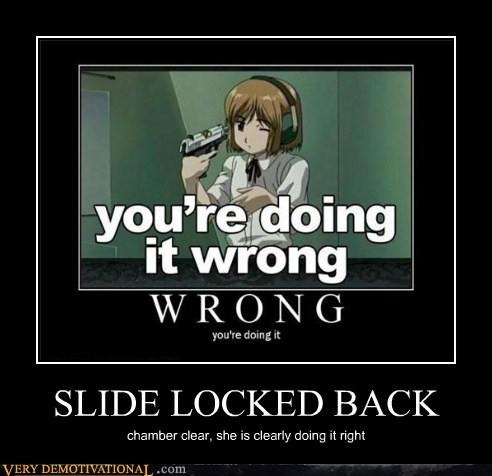 SLIDE LOCKED BACK chamber clear, she is clearly doing it right