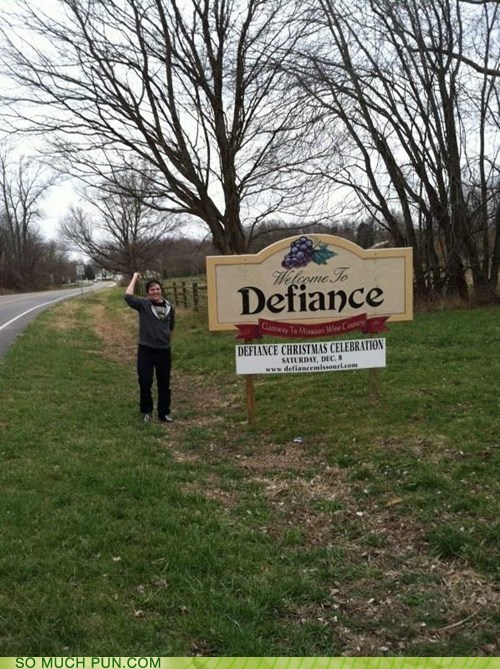 **Punmaster Jfreek says:** "Because he's shaking his fist in defiance." Defiance, Ohio? I love that band! - Matty Malaprop