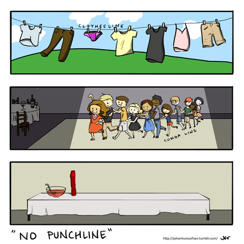 I really love that this joke both is and isn't. It's tautological but also a paradox! WHAT I'M TRYING TO SAY IS I'M A NERD AND I'M READING WAY TOO MUCH INTO THIS DON'T JUDGE ME OKAY GOD YOU'RE ALL SUCH HUGE JERKS! - Matty Malaprop