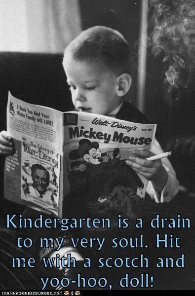Kindergarten is a drain to my very soul. Hit me with a scotch and yoo-hoo, doll!