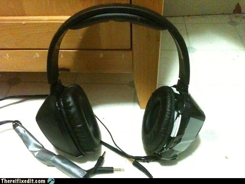 "After saving broken headphones that have opposite sides broken, I fuse them together as best/fast as I can, so I don't have to buy new ones. Note the two cords, the headphones require two audio jacks to use."