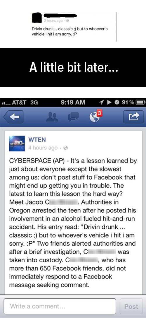 Oregon Teenager Posts Status About Driving Drunk to Facebook, Good Guy Friends Turn Him In to Police