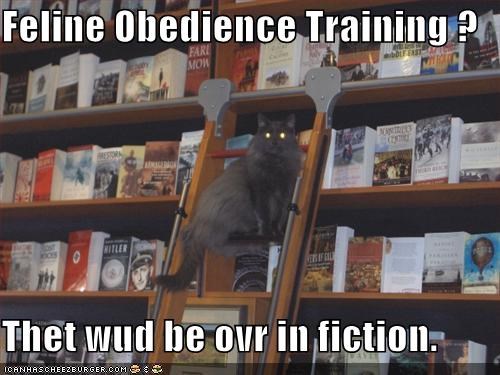 Feline Obedience Training ? Thet wud be ovr in fiction.