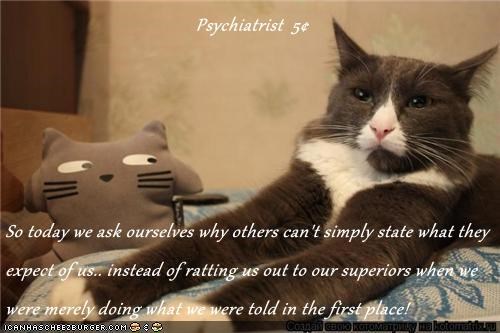 Psychiatrist 5¢ So today we ask ourselves why others can't simply state what they expect of us.. instead of ratting us out to our superiors when we were merely doing what we were told in the first place!