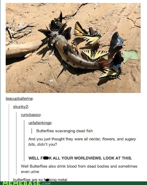 It's all a lie, everybody. What those butterflies are doing is called puddling, and they're actually just trying to get some salt. Learn more