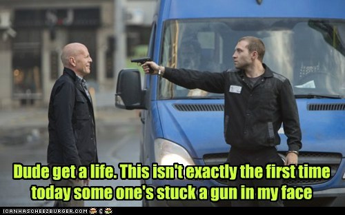Dude get a life. This isn't exactly the first time today some one's stuck a gun in my face
