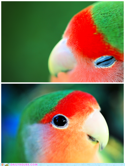 Tryphosa20 says: "My sister's sweet little lovebird named Colours. She definitely knows how to take a picture."
