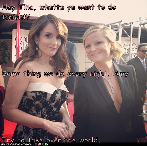 Hey Tina, whatta ya want to do tonight? Same thing we do every night, Amy Try to take over the world.