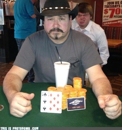 Friend of mine was so proud of his poker winnings, he didn't notice or care about the dude in the background and proudly posted his photo to FB. LOL