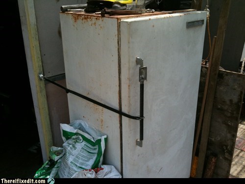 This is my father-in-law's drinks fridge, which is in a covered area of the backyard near where the (home-made) BBQ is.