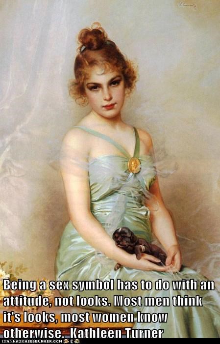 Being a sex symbol has to do with an attitude, not looks. Most men think it's looks, most women know otherwise. Kathleen Turner