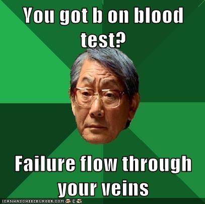 You got b on blood test? Failure flow through your veins