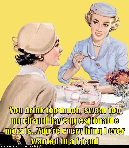 You drink too much, swear too much and have questionable morals...You're everything I ever wanted in a friend