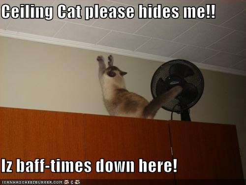 Ceiling Cat please hides me!! Iz baff-times down here!