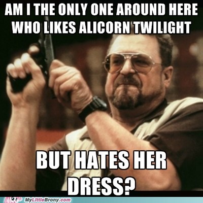 Rarity is disappointed with Twilight's dress.