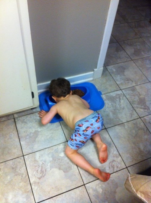 Don't stop the toddler from eating dog food! Take a picture and post it to Facebook instead!
