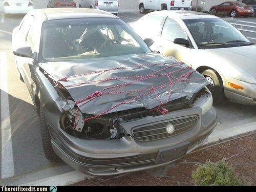 "This happened on their way to vacation in Destin, FL. They weren't about to let a little fender bender ruin their plans, what with the husband having a little redneck blood in his veins and all. Way to save the trip, sir!"
