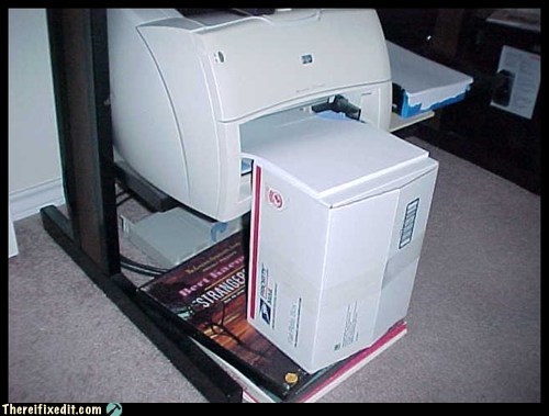 "Thanks USPS. Beats a new printer. And yes, those are my favorite albums used as shims."