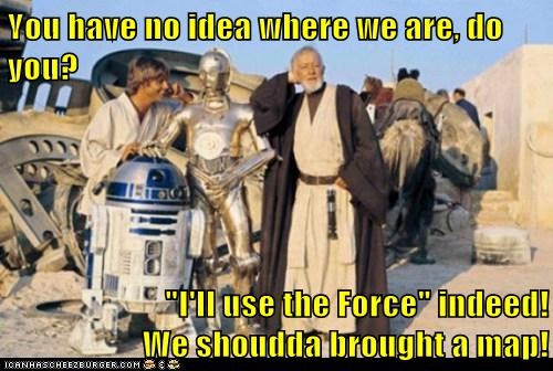 You have no idea where we are, do you? "I'll use the Force" indeed! We shoudda brought a map!
