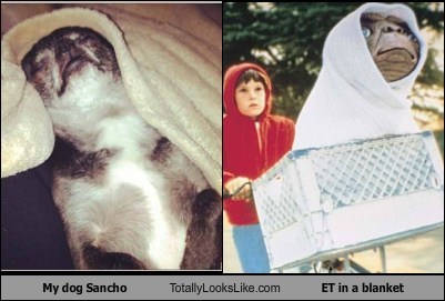 My Dog Sancho Totally Looks Like ET in a Blanket