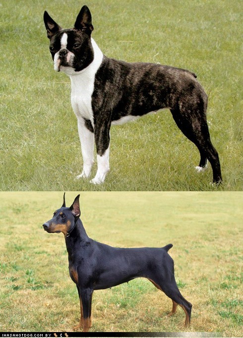 Goggie ob teh Week FACE OFF: Boston Terrier vs. Doberman Pinscher