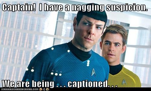 Captain! I have a nagging suspicion. We are being . . . captioned. . .